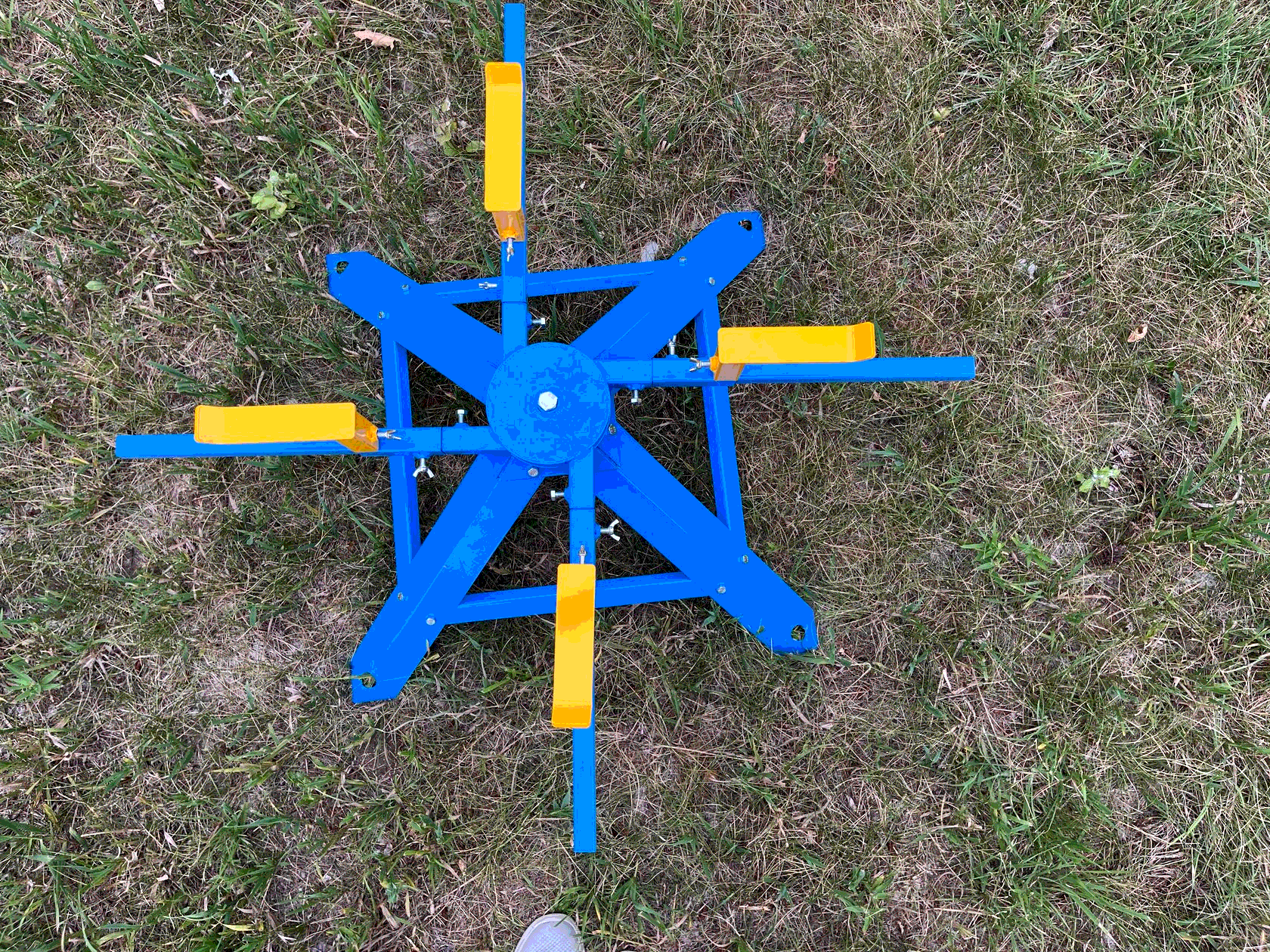 - Надежная фиксация — опорные ножки можно закрепить стержнем в землю или болтом к кузову машины.
